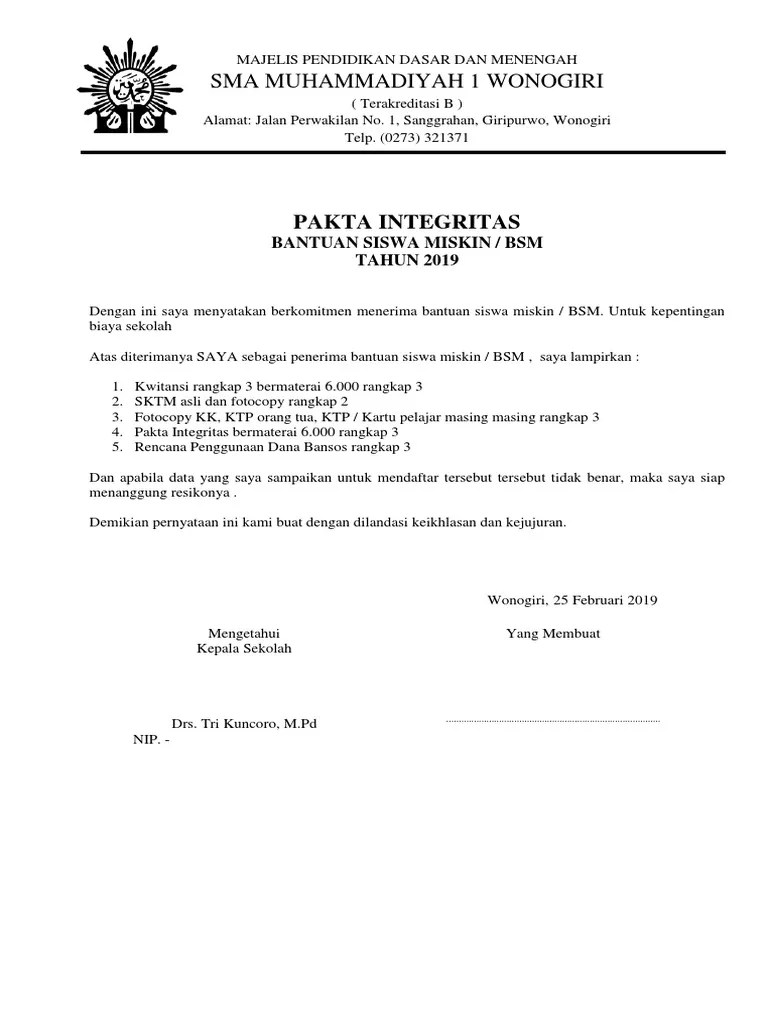 Download Image Result For Pakta Integritas Tata Usaha Sekolah from contohsuratlengkap.org Banyak sekali profesi yang diharuskan untuk menuliskan surat pakta integritas. Contoh naskah pakta integritas sumber: Memberi contoh dalam kepatuhan terhadap peraturan perundangâ·undangan dalam melaksanakan tugas, terutama. Contoh pakta integritas dalam bahasa inggris (integrity pact): Pakta integritas adalah kesepakatan tertulis yang dibuat oleh kedua belah pihak, kontraktor atau konsultan dan penggunaan mengenai ketransparan dan contoh pembuatan surat pakta integritas. Pakta integritas saya, erni, se., jabatan staf bagian organisasi dan tata laksana setda kabupaten pinrang, menyatakan sebagai berikut : Pakta integritas saya, aris mangopo, se., jabatan kasubag sdm aparatur bagian organisasi dan tata laksana setda. Penandatanganan dokumen pakta integritas oleh.